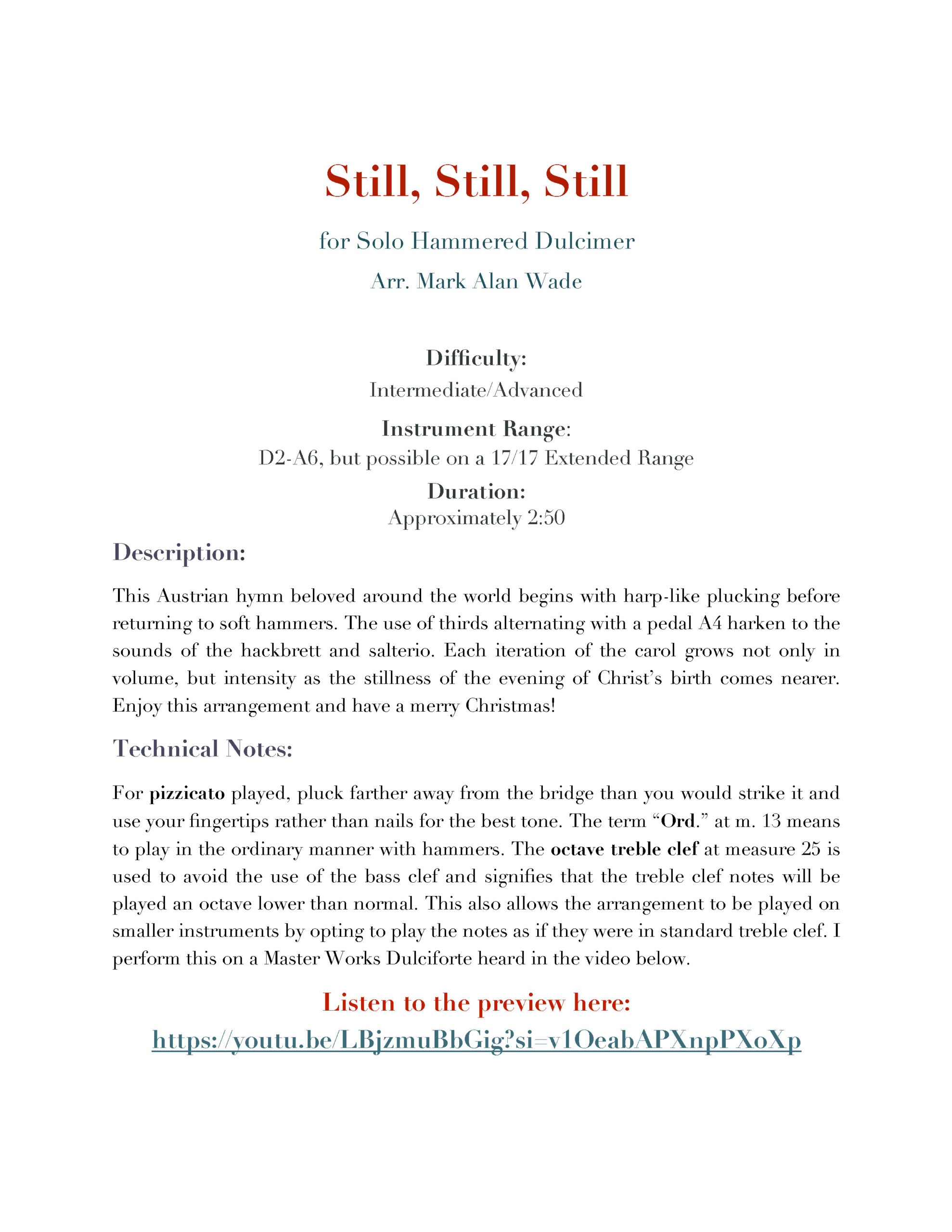 Arranged for Hammered Dulcimer Solo: Mark Alan Wade